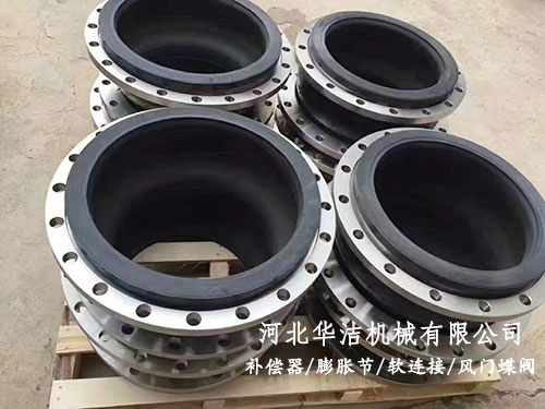 橡胶膨胀节一般是由两端带橡胶凸缘的光滑波形补偿元件与金属法兰组成。金属法兰常采用松套结构。波形补偿元件表面为橡胶,内层为数层强力纤维或钢带(丝)加强的夹层。加强纤维或钢带(丝)等加强夹层一直延伸到两端的像胶凸缘,凸缘内有硬钢丝骨架。
